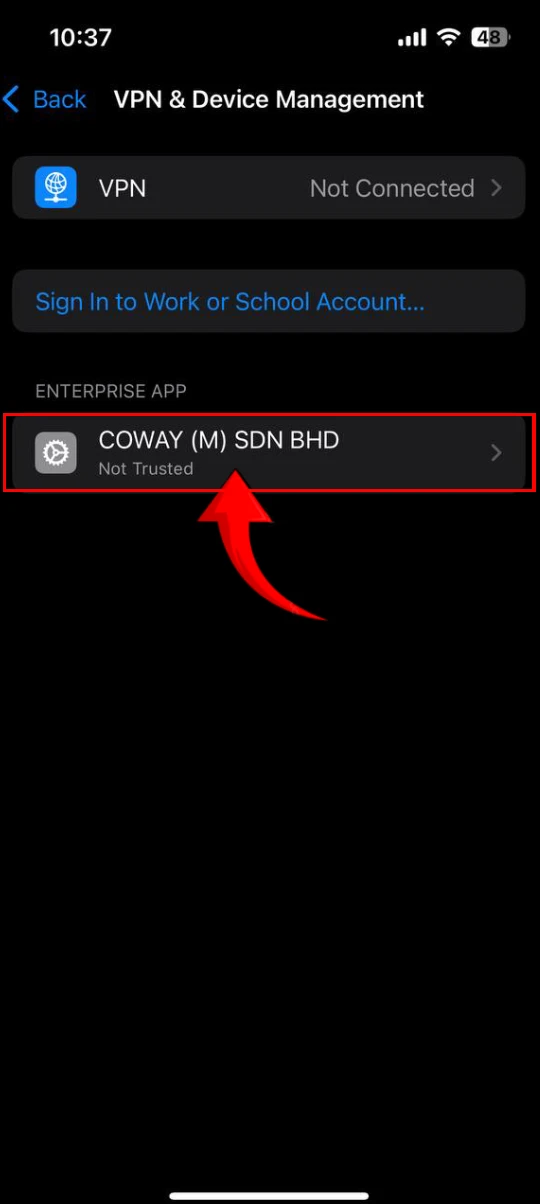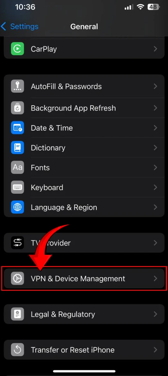 After the installation, go to General Settings, tap on VPN & Device Management.